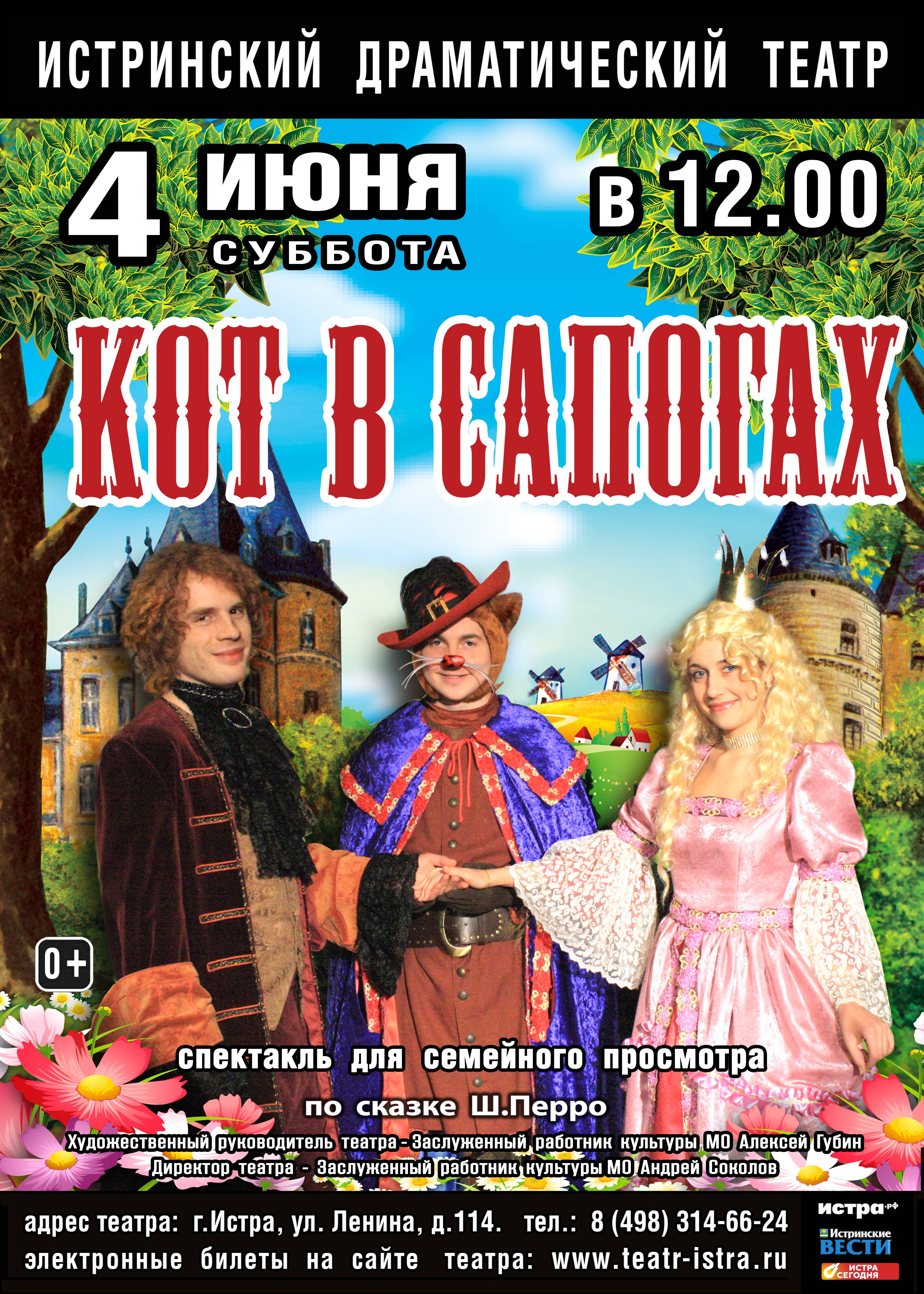 Спектакль об удачливом сыне мельника, получившем в наследство совершенно необыкновенного кота, построен на приемах соучастия зрителей в действии и будет интересен как юным зрителям, так и их родителям.