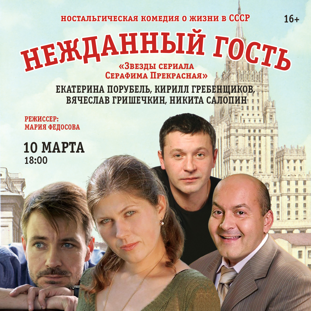 10 марта в 18 часов на сцене МВК "Новый Иерусалим" можно увидеть ностальгическую комедию о жизни в СССР "Нежданный гость".