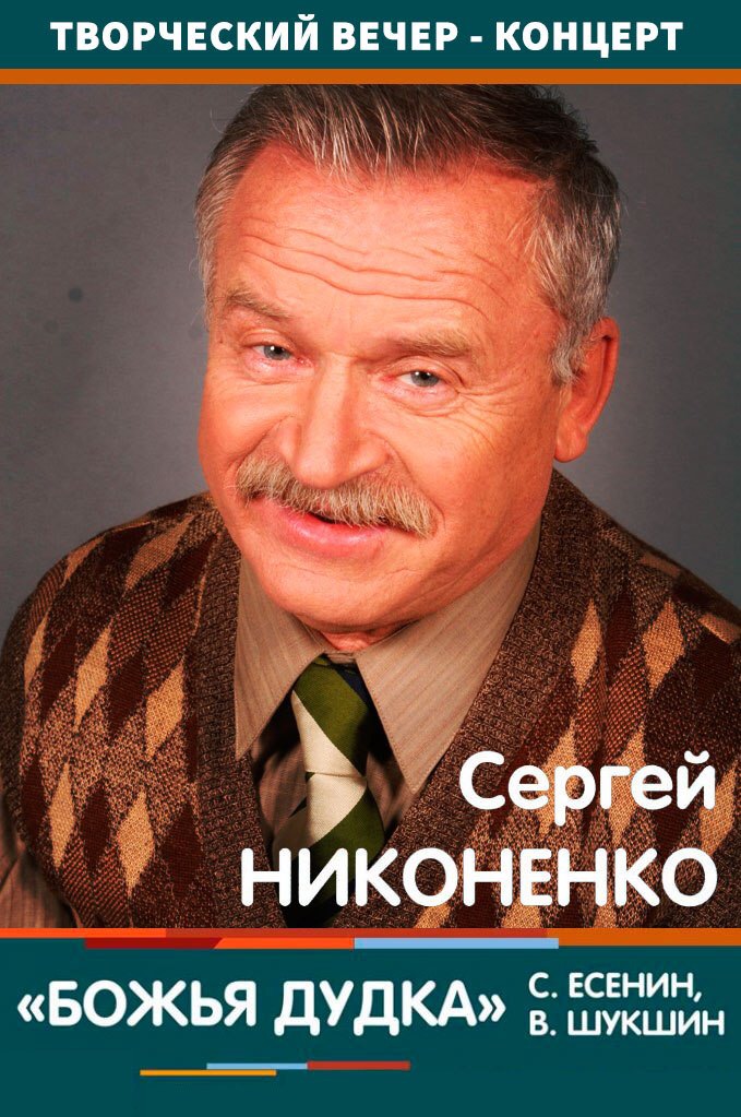 Свой концерт актёр назвал «Божья дудка…» и посвятил его 123-летию со дня рождения Сергея Есенина. Во время двухчасового концерта в исполнении артиста прозвучат любимые и узнаваемые с первых строк произведения Сергея Есенина: «Несказанное, синее, нежное..», «Исповедь хулигана», «Письмо к женщине». Для Сергея Петровича творчество С. Есенина – это целый огромный мир, прекрасный и одновременно трагический. Посетители смогут увидеть кадры из фильма «Пой песню, поэт» с участием С. П. Никоненко.