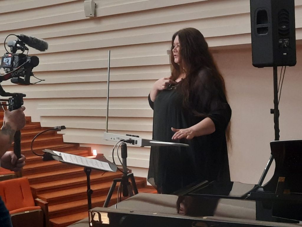У этого инструмента нет ни струн, ни клавиш. Мультиинструменталист Олеся Ростовская играла на терменвоксе, двигая руками в воздухе и воздействуя на электромагнитное поле. Звуки терменвокса кажутся неземными, настолько необычно звучит этот инструмент.
