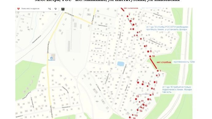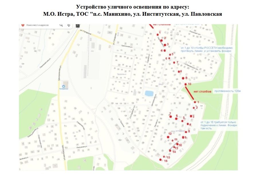 Так, на улицах Институтская и Павловская планируется устройство уличного освещения протяжённостью 982 метра. 805 метров освещения появится в п. ст. Манихино на ул. Мира, ул. Спортивной и ул. Садовый переулок. Чуть больше 500 метров — на улице Новой и 3 332 метра — в деревне Рубцово.