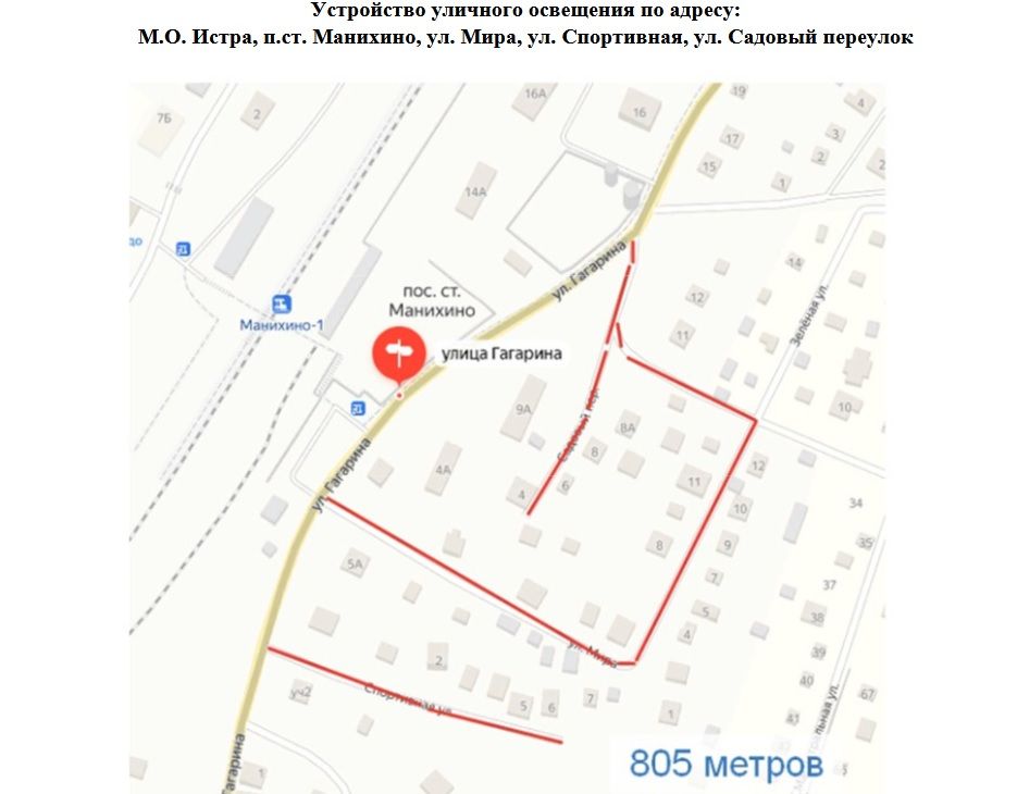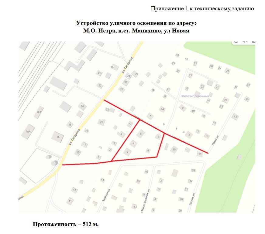В техническом задании речь идёт о шести улицах, расположенных в пос. ст. Манихино и улице Радужной в деревне Рубцово.