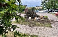 На въезде в микрорайон исчезла сосна, которая украшала круг.