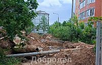 До начала ноября в текущем году здесь должны были завершить ремонт коммуникаций и, естественно, благоустроить территорию после проведения всех работ. Однако рабочие, закидав лужу чем-то весьма отдалённо похожим на асфальт, свернули фронт работ.