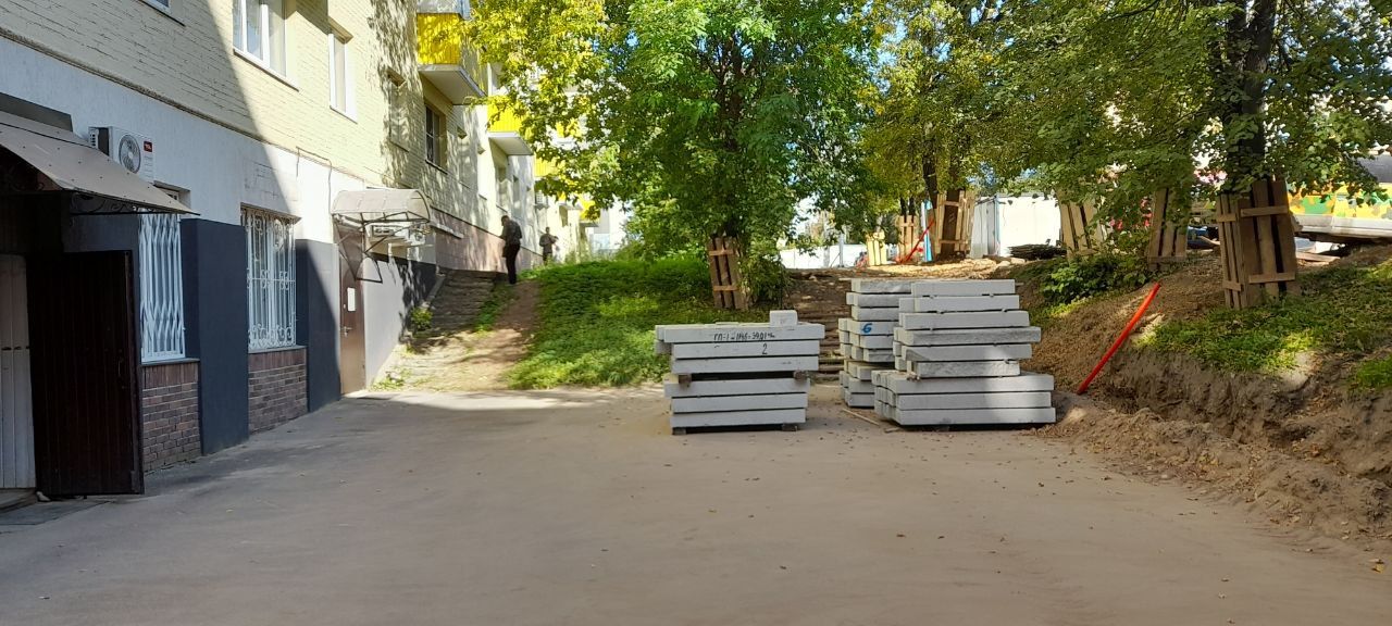 На объекте работает техника. Подрядная организация приступила к демонтажным работам на территории парковки, располагающейся напротив администрации.
