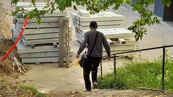 Горожане из-за отсутствия доступа к привычным пешеходным дорогам добираются до места назначения обходными путями.