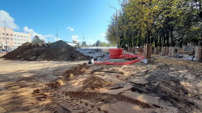Масштабное благоустройство площади Революции в Истре продолжается.