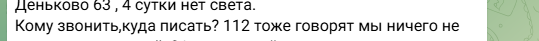 Третьи сутки остаются без света населённые пункты в разных частях округа, люди сообщают, что есть и такие, где электричество отсутствует уже четвёртый день.