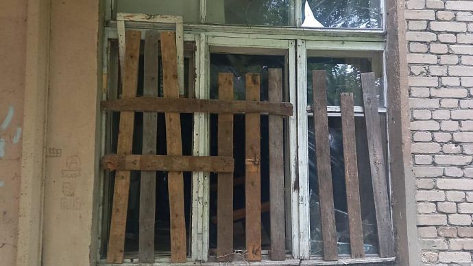 На днях работы по ограничению доступа к объекту были выполнены. В здании забиты окна, заколочены двери и установлена сетка, ограничивающая вход на территорию.