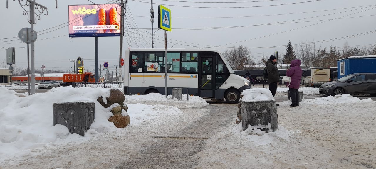 Гостей Истры у автовокзала встречают заваленные снегом мусорные урны
