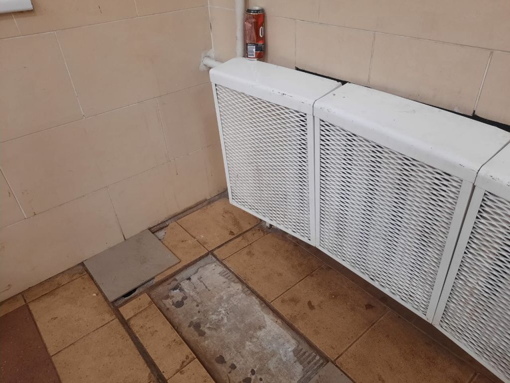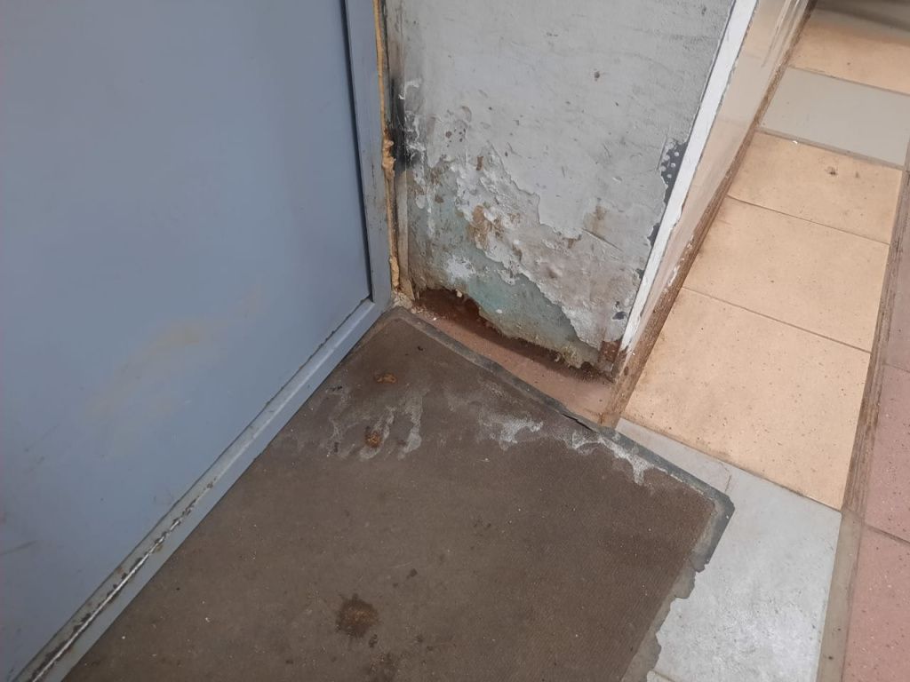 Давайте заглянем в зал ожидания. Сразу у входа — неприглядная картина: грязная отсыревшая штукатурка и краска обваливаются кусками.