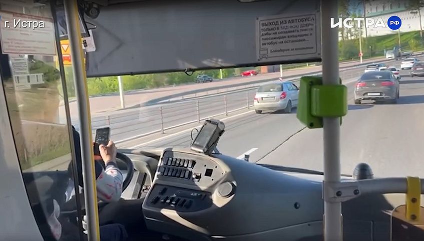 Истринцы сняли на видео водителя автобуса, «залипшего» в телефоне