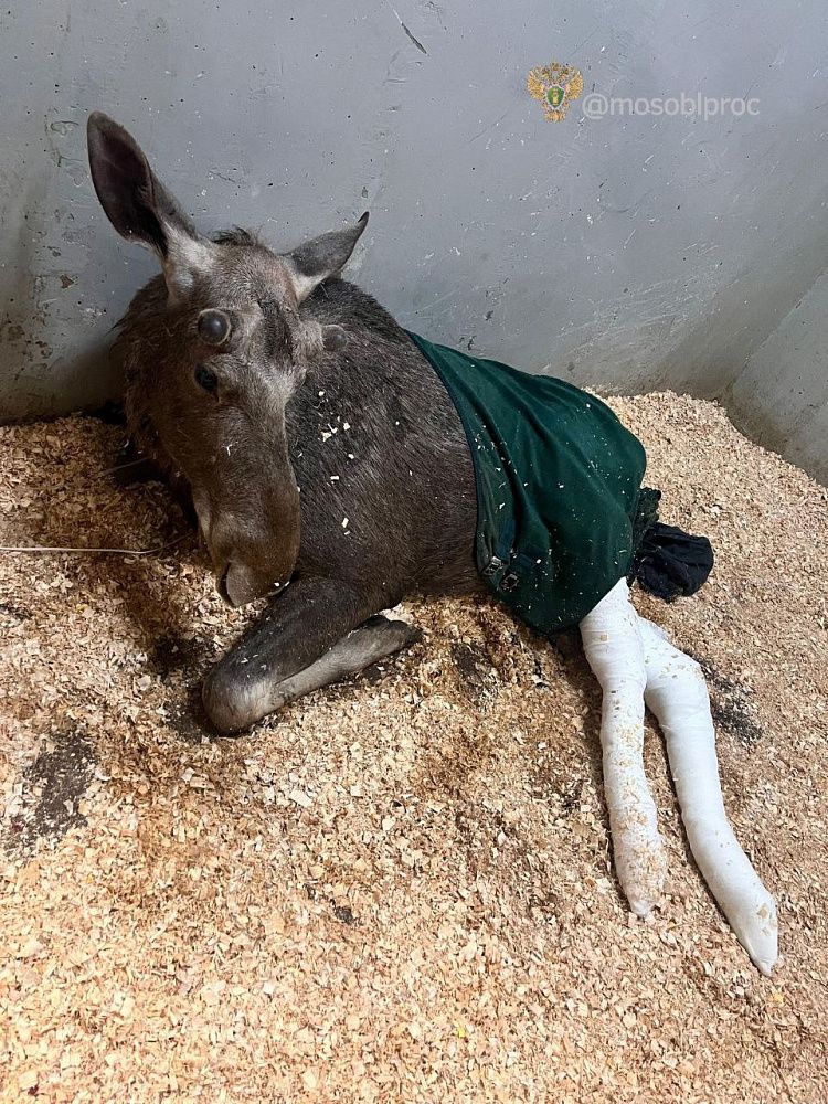 По данным издания, ветеринары решили сначала отправить лося в клинику в Дмитровском районе. Сейчас лось находится в стабильно тяжёлом состоянии. У него множественные переломы тазовых конечностей. По информации канала, медики ввели животному седативные и обезболивающие препараты, наложили гипс и повязки. Предварительно известно, что лосю могут провести операцию.