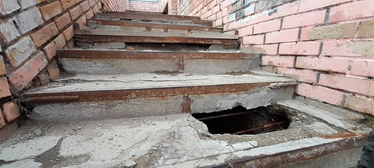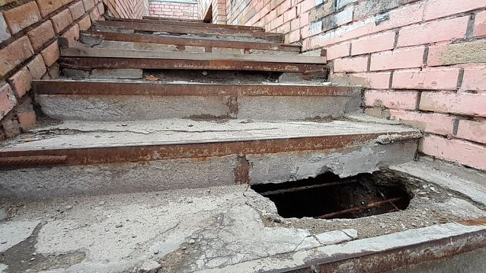 На улице Ленина пешеходы рискуют провалиться под лестницу