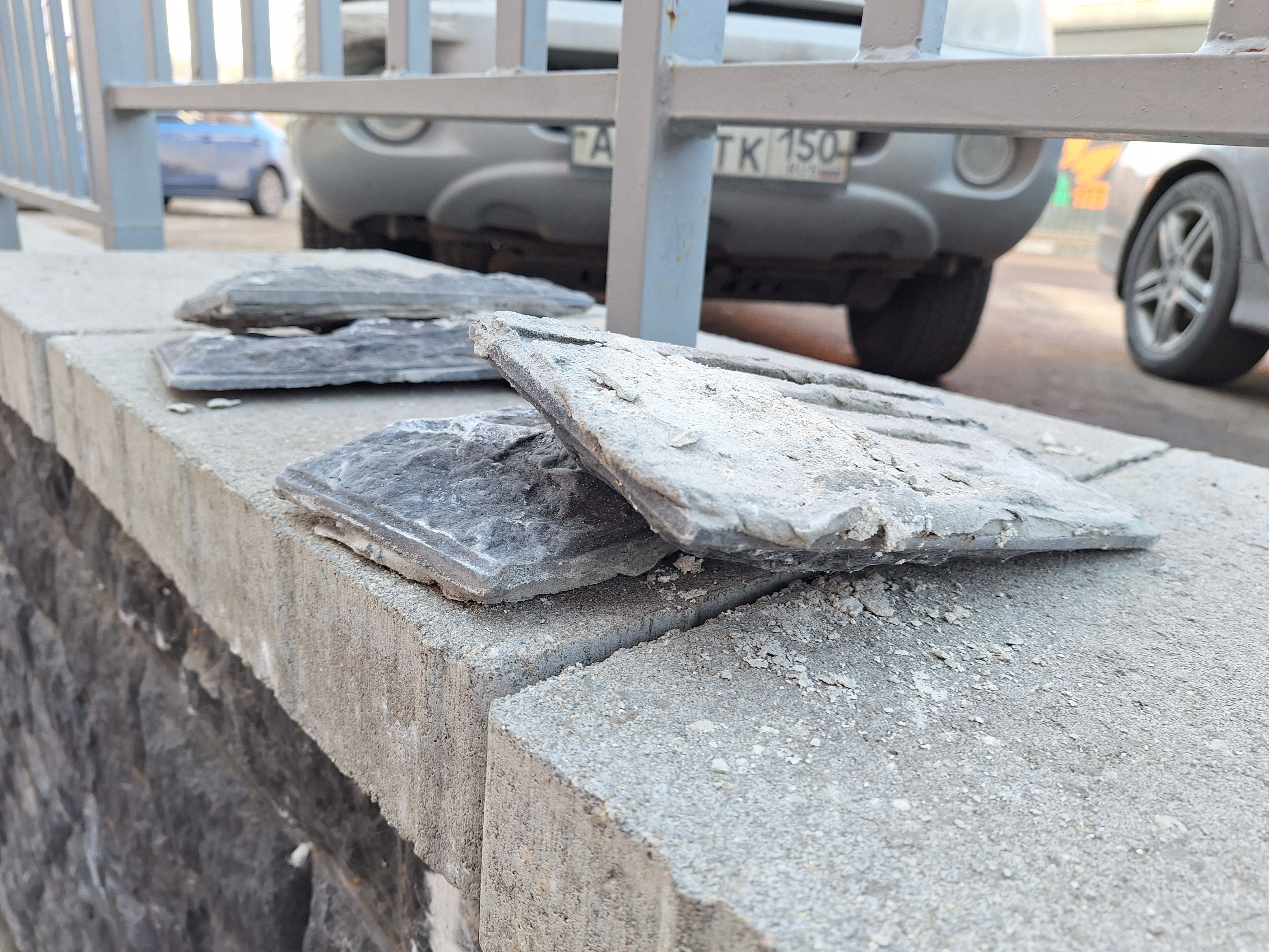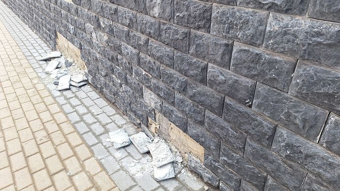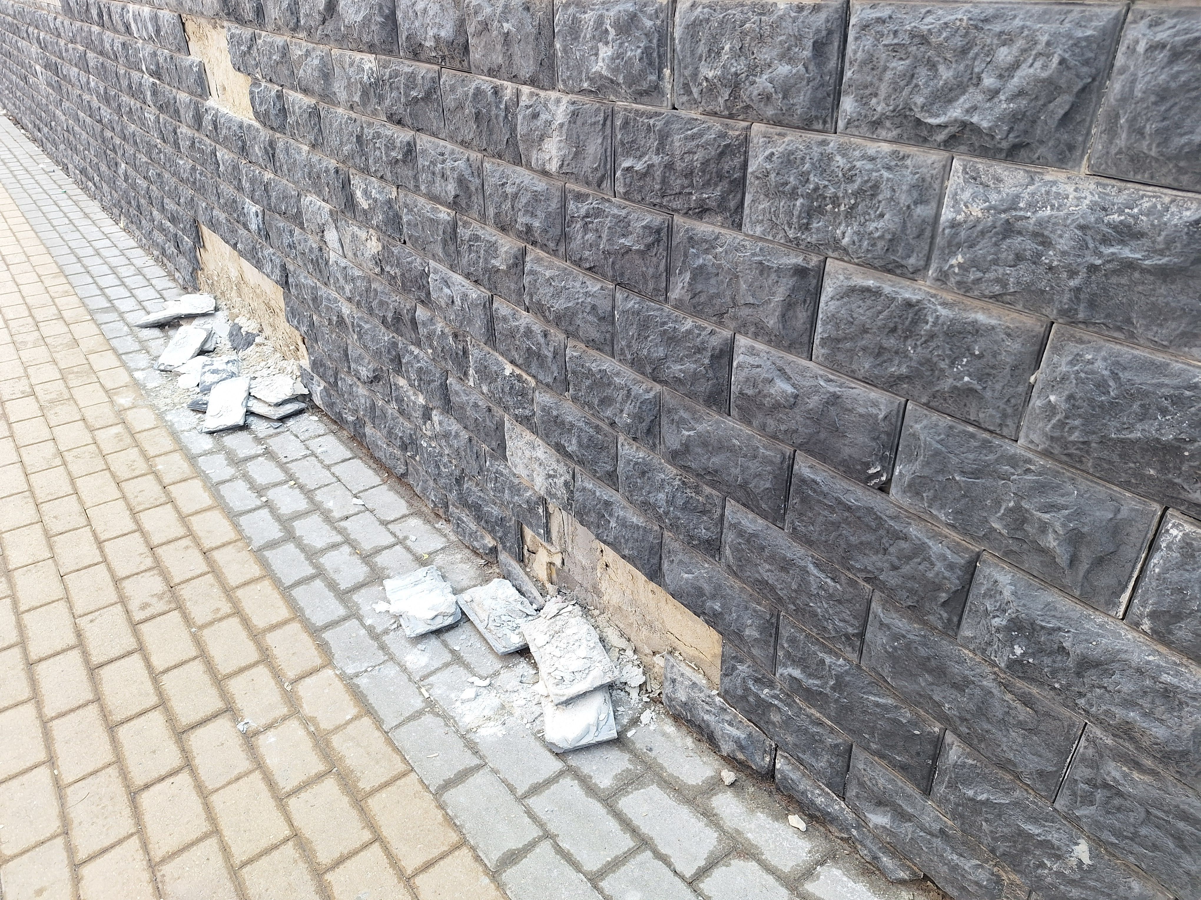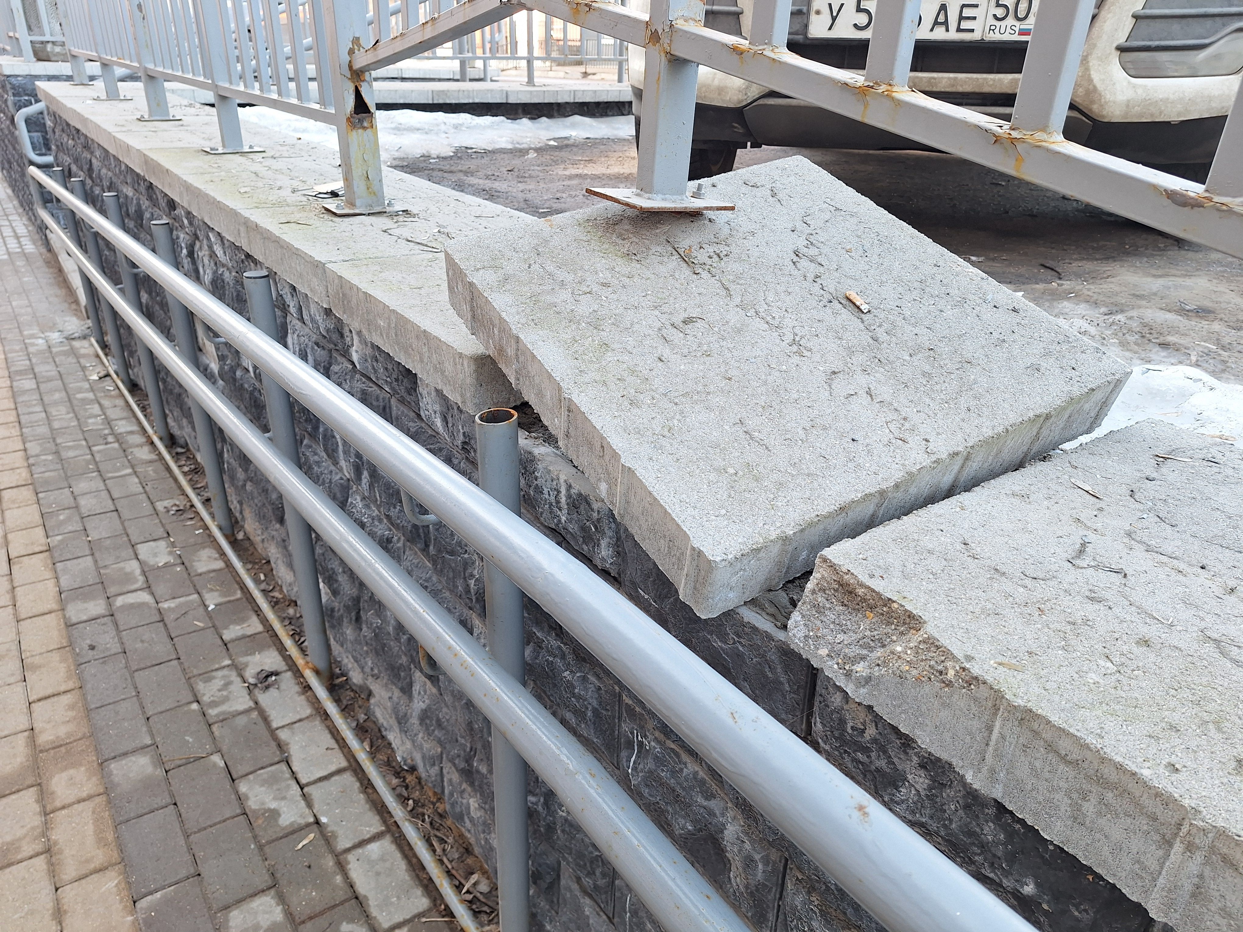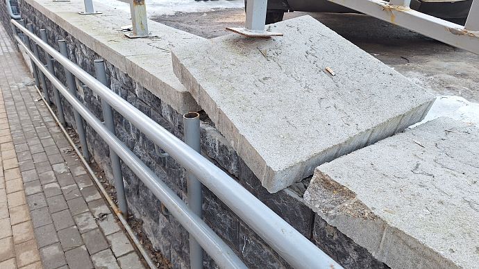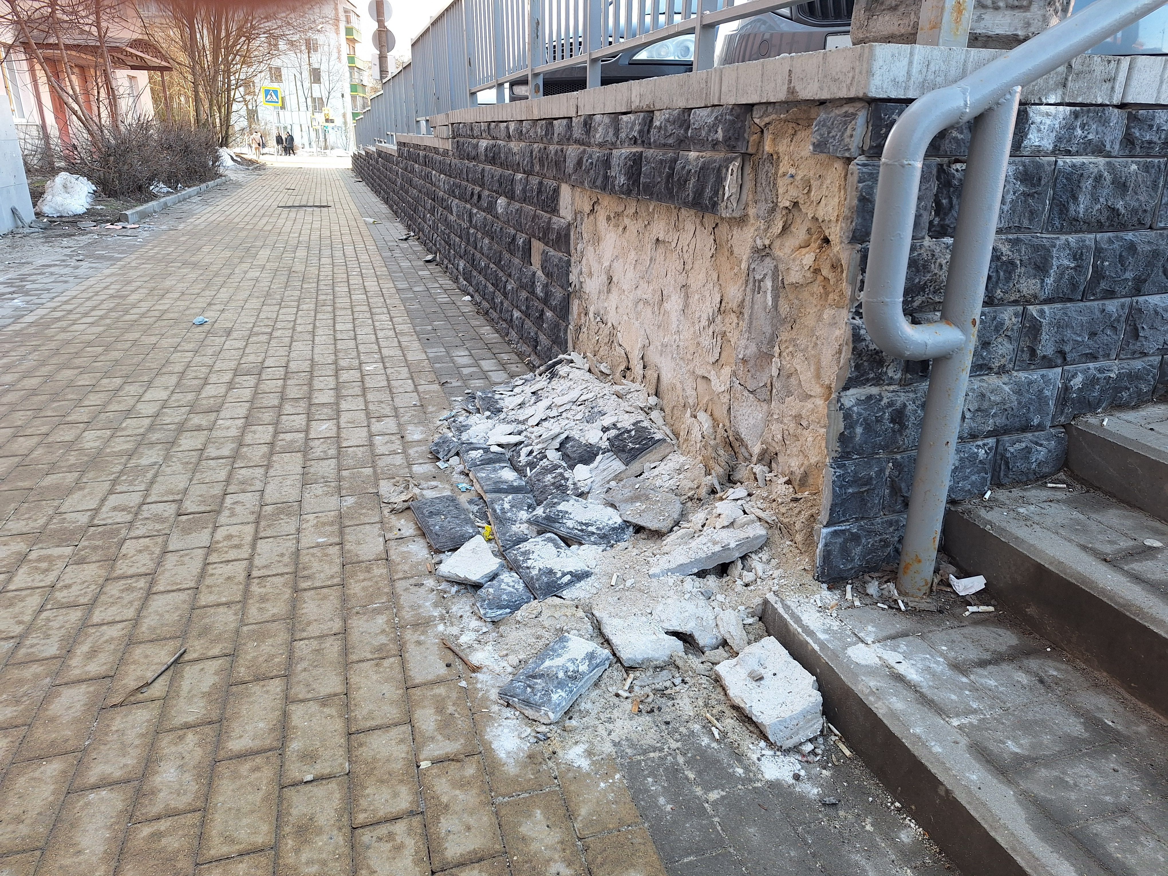 На территории отремонтировали ступени на спусках к поликлинике. Восстановили и выложили декоративной облицовочной плиткой подпорную стену у проезжей части дороги. Однако куски фасада начали отваливаться уже в январе 2025 года.