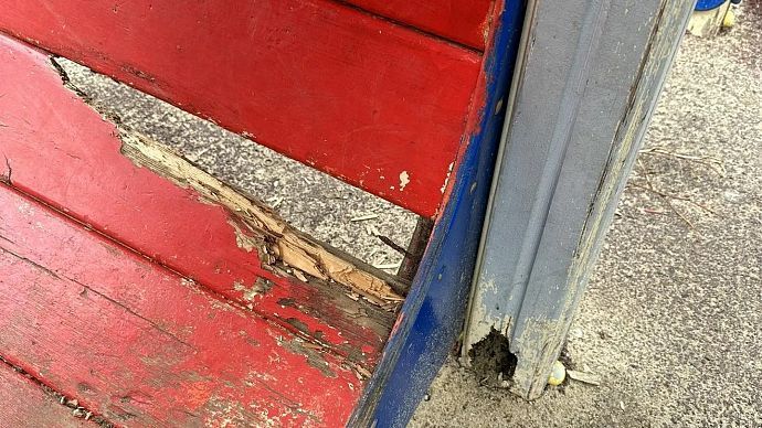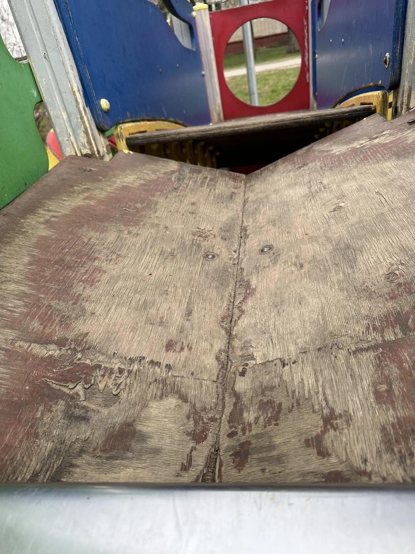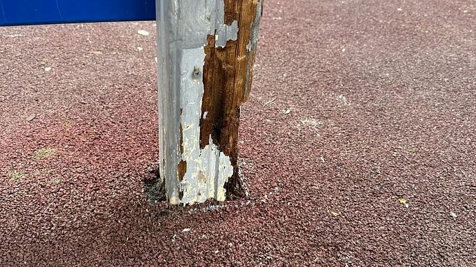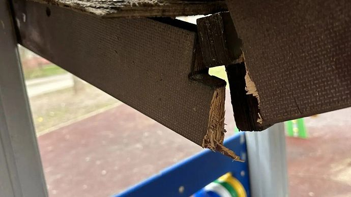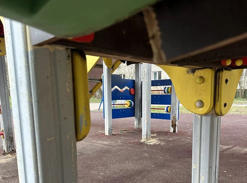 Сигнальная лента оградила прогнившую детскую площадку от детей