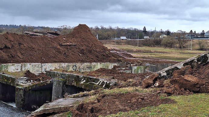 Сегодня на так называемой плотине вблизи деревни Брыково царит хаос.