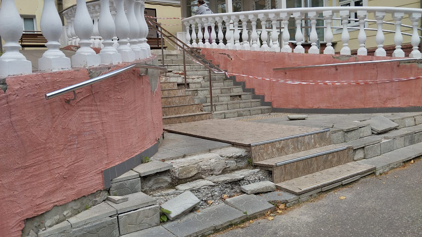В ожидании ремонта лестница в Дедовскую поликлинику продолжает разрушаться