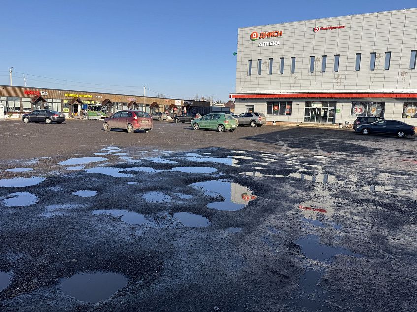 Ямы на частной парковке в Ленино ремонтируют только после жалоб