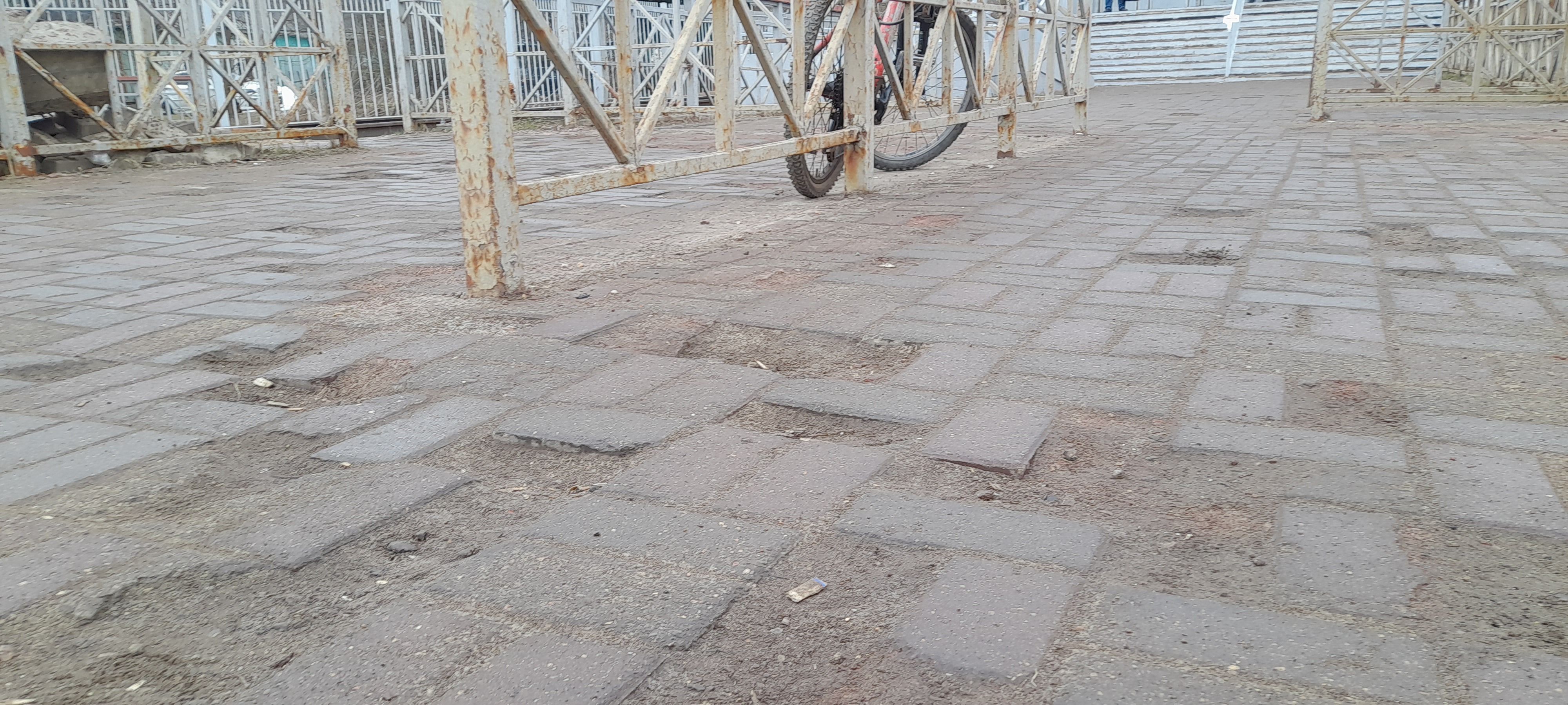 К локальному ремонту приступили сегодня. Рабочие железнодорожной службы демонтировали старую разбитую плитку, чтобы уложить новую.