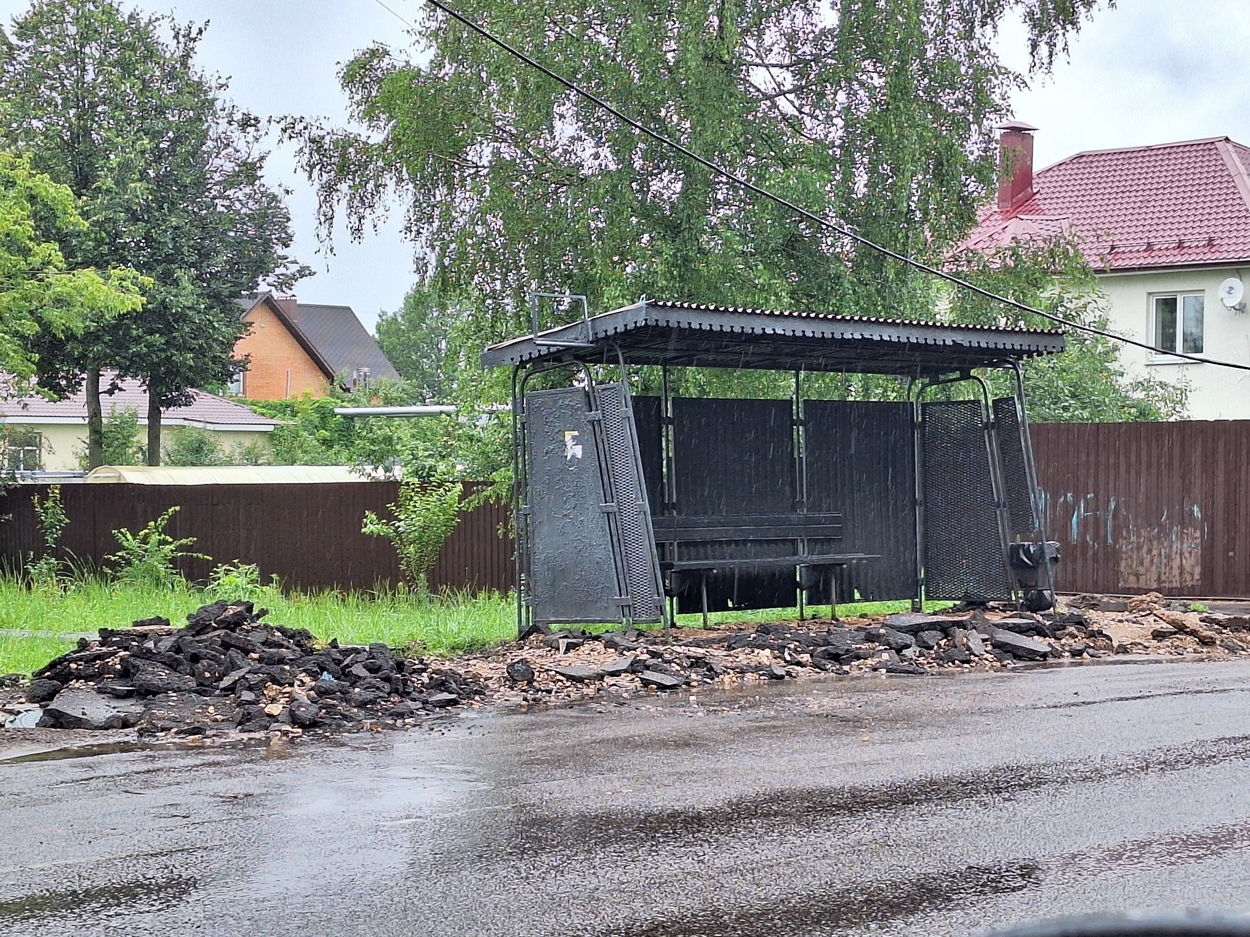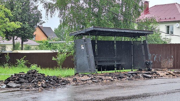 Аналогичную ситуацию глебовчане наблюдают в эти дни и на автобусной остановке у поселковой администрации. Там тоже сняли асфальт и всё бросили. Войти и выйти из автобуса, не переломав ноги, можно с большим трудом.