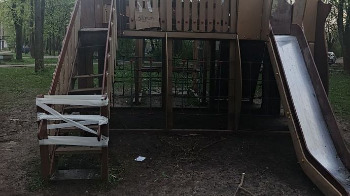 Всё, что смогли предпринять представители городской инфраструктуры, — это сделать попытку площадку перегородить. Однако юные первооткрыватели даже не заметили сигнальной ленты и наспех нарисованного с ошибками предупреждения.