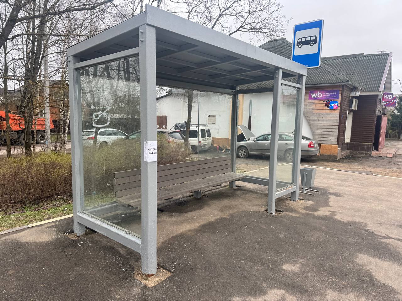 Наспех нанесённая серая краска — повсюду: на павильоне, на лавке, на асфальте и даже местами на стёклах... Такую картину в эти дни можно наблюдать повсеместно. Складывается впечатление, что работа ведётся не на качество, а на скорость отработки наряда.