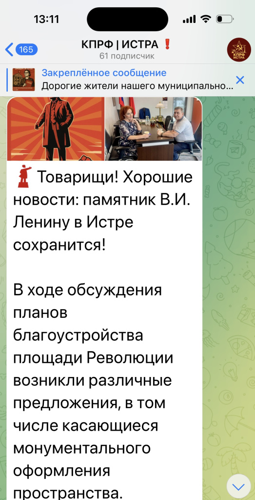 Об этом сообщает телеграм-канал Истринского отделения КПРФ.