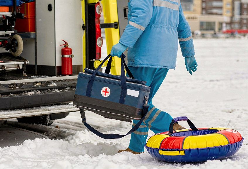 Девочка, спускаясь с горки на тюбинге, врезалась в дерево.