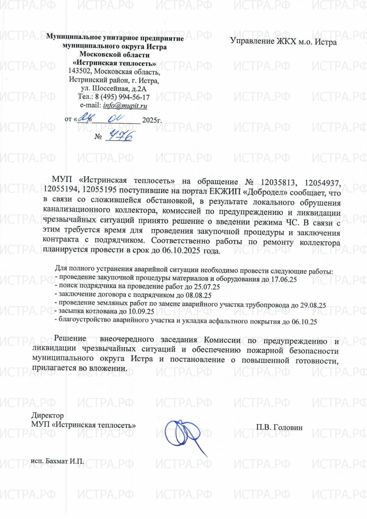 Работы по ремонту коллектора планируется провести в срок до 06.10.2025 года.