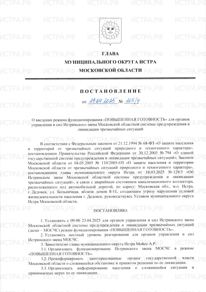На основании решения КЧС было принято постановление администрации о введении режима "Повышенная готовность".