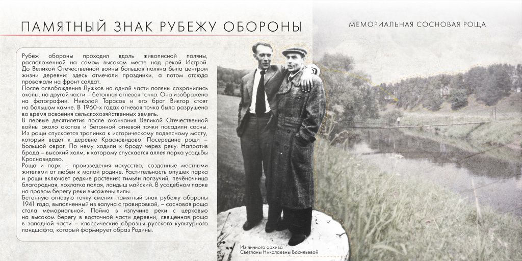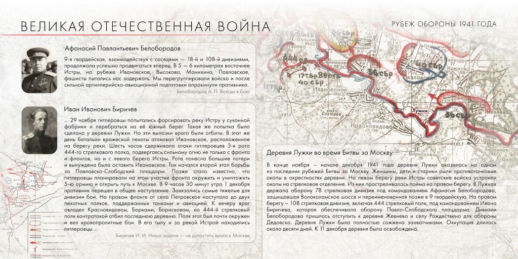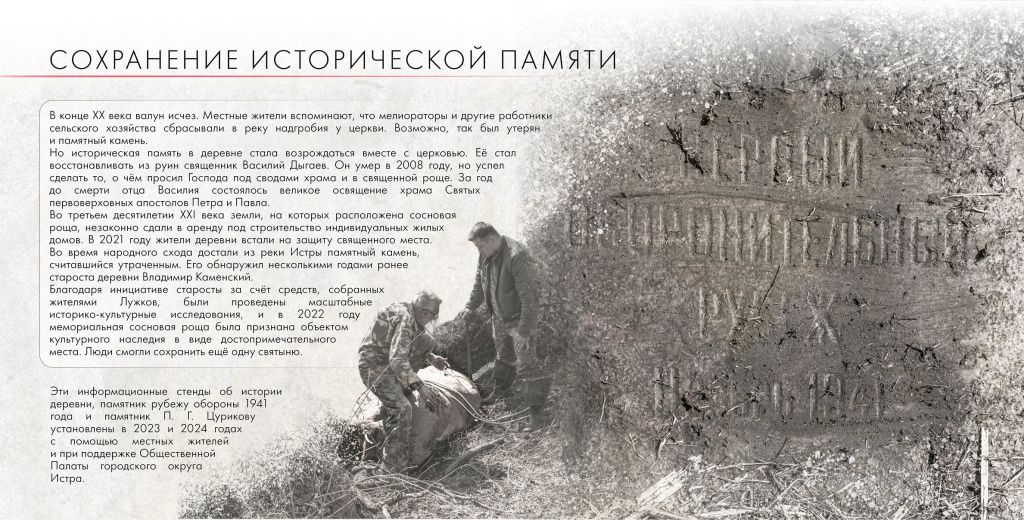 В конце ноября – начале декабря 1941 года высокий берег реки Истры стал одним из последних рубежей обороны Москвы, а в конце прошлого года в Лужках завершились мероприятия по сохранению военно-исторических объектов и памятных мест, которым угрожали разрушение и застройка.