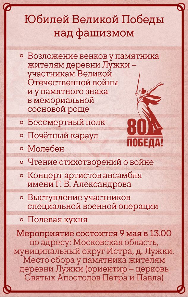 9 мая в деревне Лужки состоится народное мероприятие, приуроченное ко Дню Великой Победы