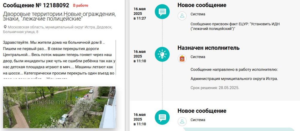 Жители дома № 8 пишут, что после начала ремонта водители стали объезжать заблокированный участок по их придомовой территории. Машины едут на высокой скорости, что угрожает безопасности пешеходов.