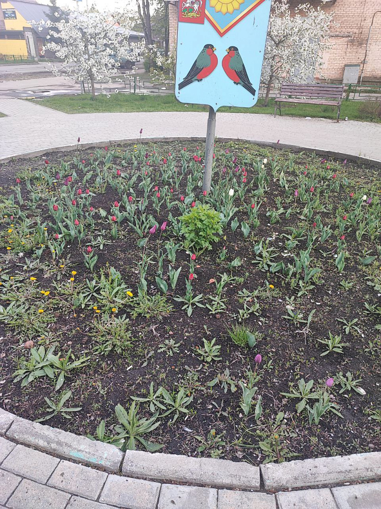 Клумба на центральной улице стала символом благоустройства посёлка в целом: красивые отчёты об уборке посреди разбитых дорог, ям и мусора.