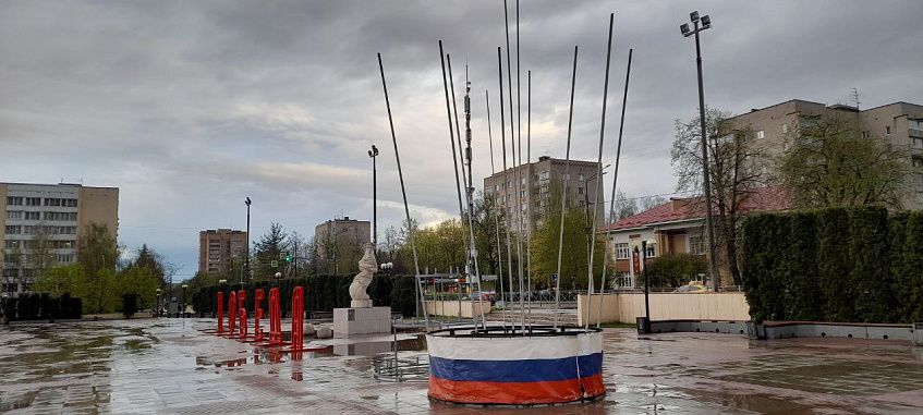 Праздничными баннерами декорированы четыре инсталляции в виде букетов цветов в Истре.