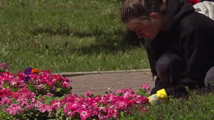На зданиях и на столбах, вдоль улиц, развешивают флаги Истры, Московской области и России. В центре города высаживают клумбы красивых цветов разных сортов и расцветок. А около кинотеатра «Мир» прямо сейчас монтируют сцену к предстоящему выступлению Олега Газманова, который выступит для жителей в День города в 21:00.