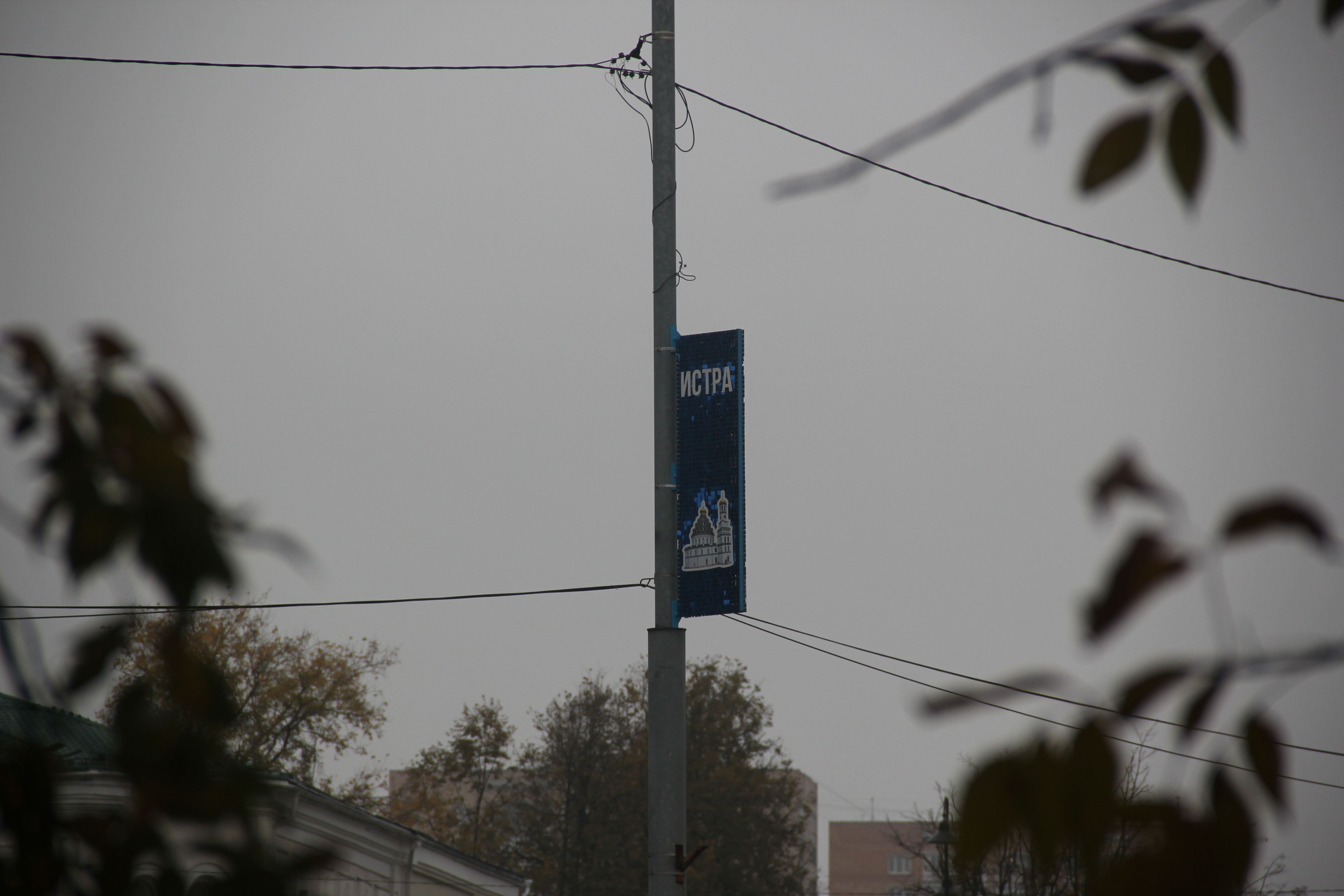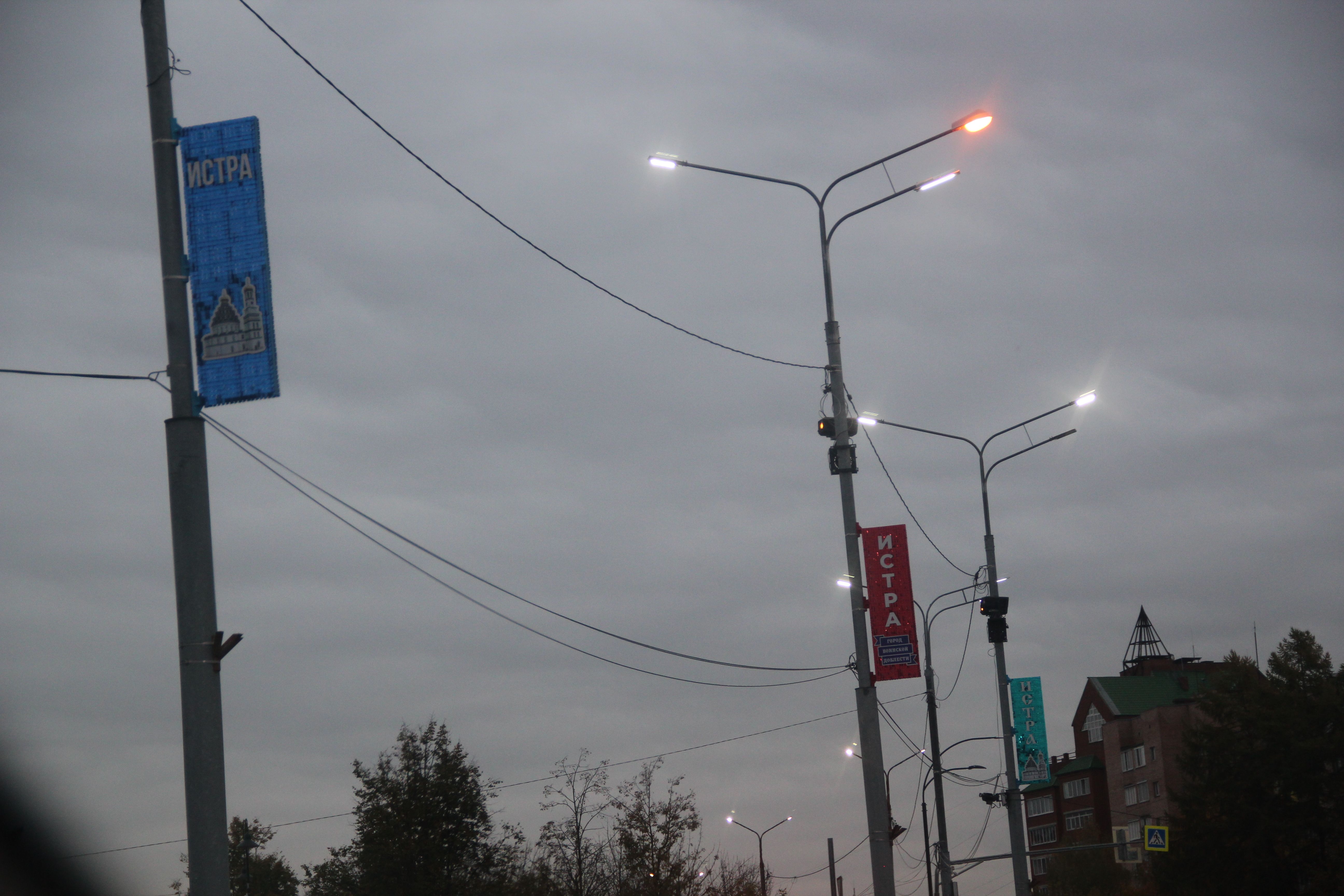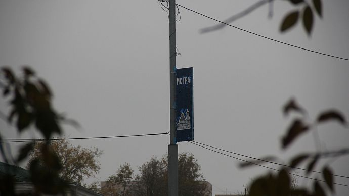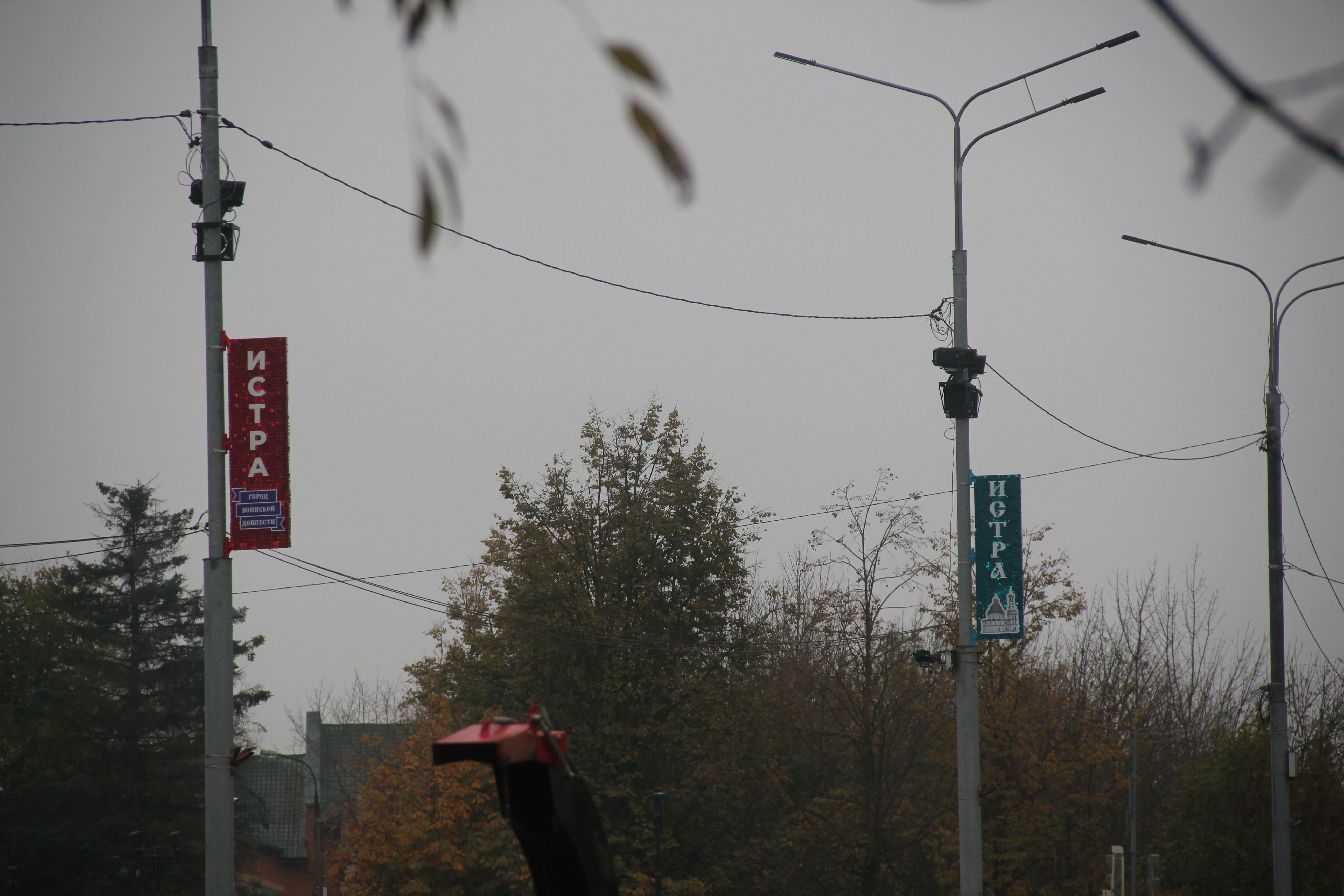 В Истре на консолях размещена надпись: "Город воинской доблести". Все три консоли имеют разный цвет.