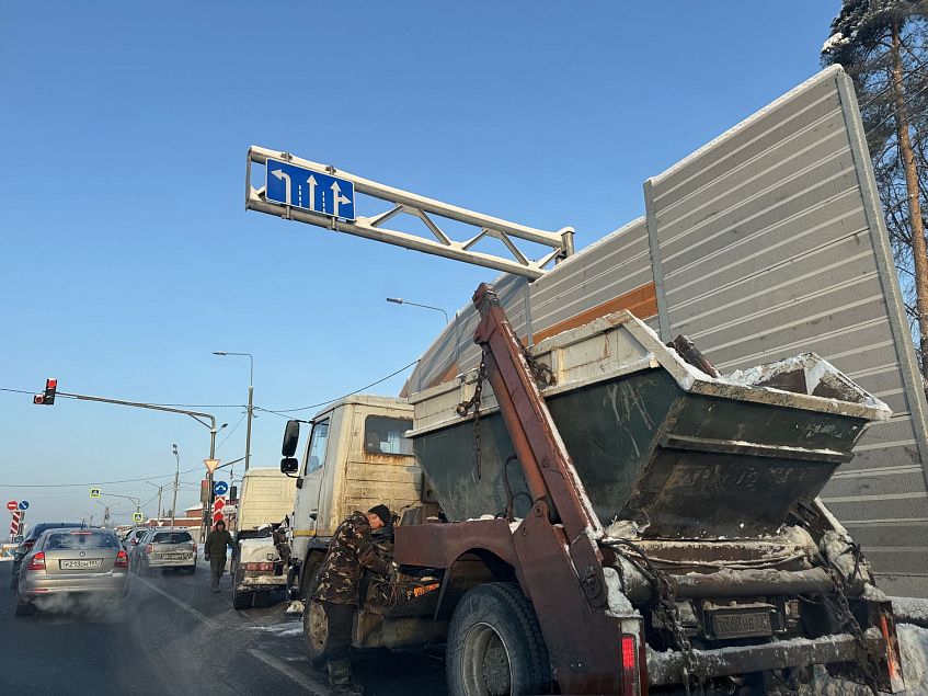 Проверку выдержали не все. Мусоровоз с заглохшим двигателем стал причиной пробки в утренние часы на пересечении Волоколамского шоссе и ЦКАД.