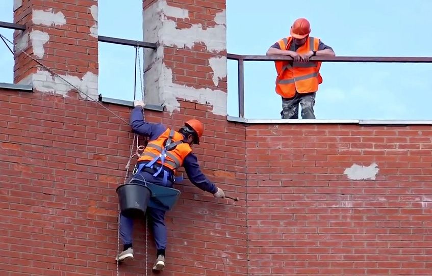 В настоящее время промышленные альпинисты проводят демонтаж кладки облицовочного кирпича верхних этажей, на которой ранее были выявлены дефекты. Они удалят отслаивающиеся части кирпича, обработают участки специальным укрепляющим составом и проведут штукатурные работы. Этот же комплекс мероприятий выполнят и на двух других корпусах дома.