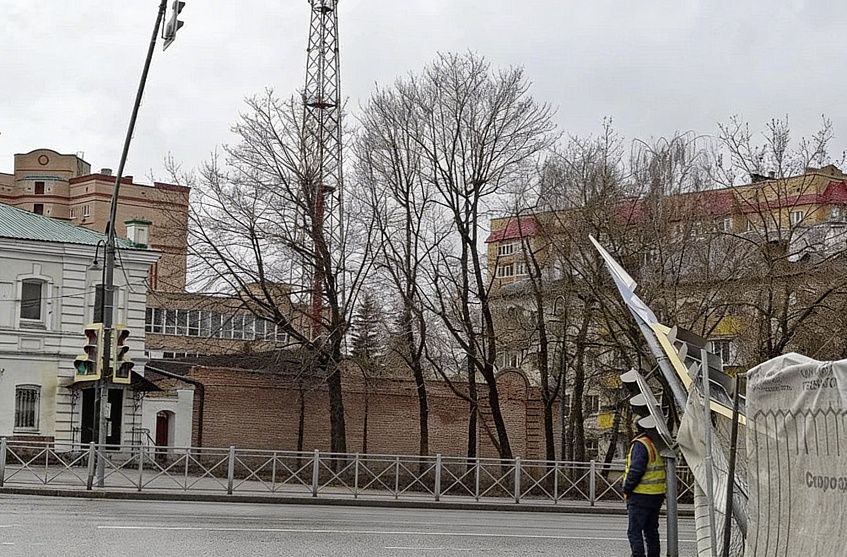 Мачту крепления оперативно восстановили. Выяснилось, что рабочие в ходе благоустройства площади светофор задели техникой.