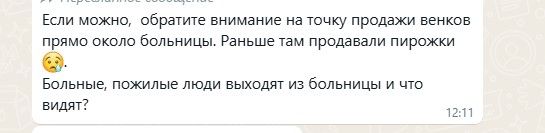 Двери в контору распахнуты, венки выставлены напоказ, прямо на крыльце. Это, конечно, «просто бизнес», но многих такое соседство смутило. Приехал лечиться — а тебе на подступах к медучреждению предлагают организовать похороны "под ключ".