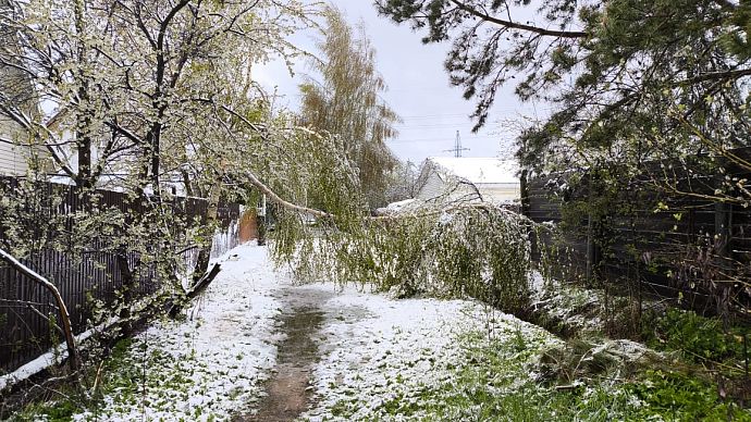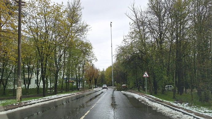 Между тем плюсовая температура превратила улицы города в реки. Истра утопает уже не в снегу, а в воде.