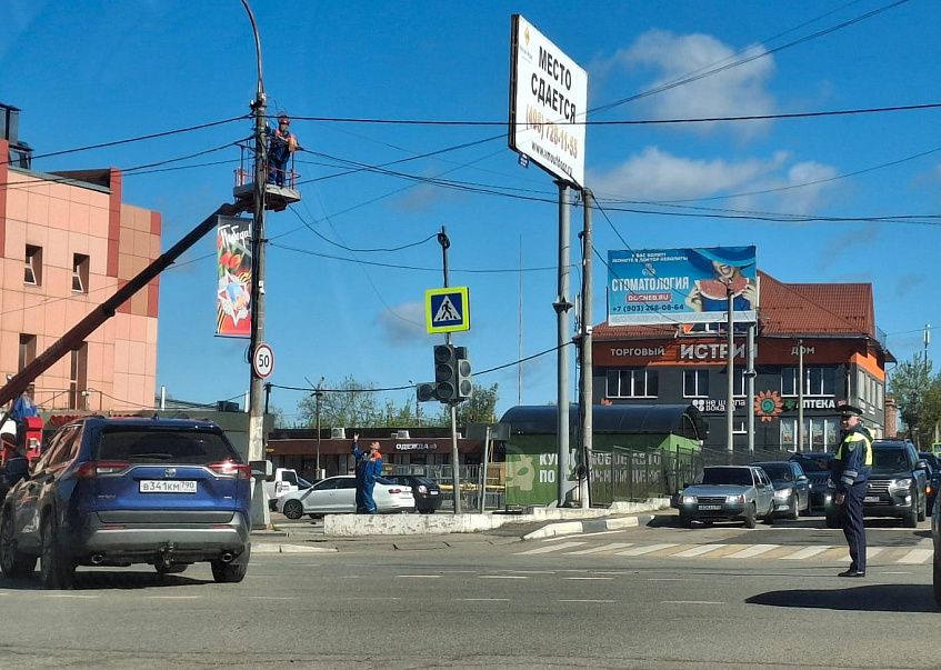 На оживлённом перекрёстке улиц Шнырёва и Босова с утра работал регулировщик.