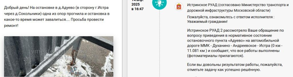 Исполнители отчитались о ремонте: повреждённый элемент был заменён.