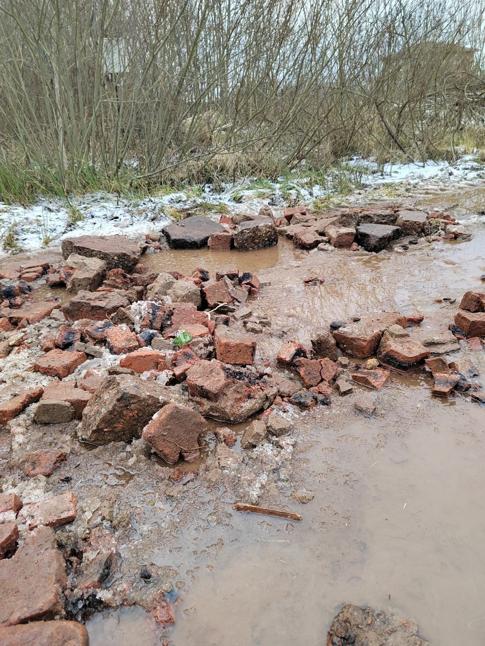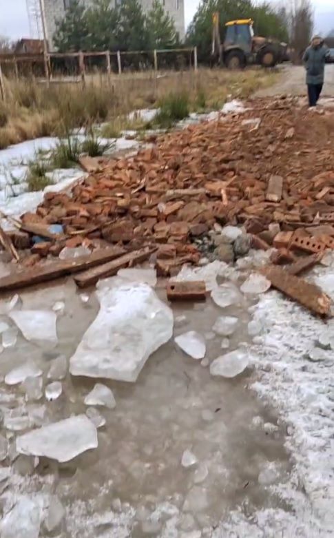 Незадолго до этого люди жаловались на огромные лужи, которые невозможно было обойти. Теперь у жителей возникла другая проблема: администрация выложила "дорогу из красного кирпича" — и не только из него... Со слов дуплёвцев, там присутствуют арматура и доски, возможно, с гвоздями.