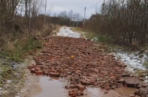 В Дуплёво дорожные ямы засыпали битым кирпичом с торчащей арматурой