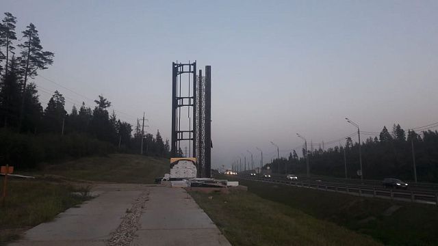 На границе Красногорска и округа Истра на обочине Новорижского шоссе растёт новый объект, очень напоминающий стандартную стелу.