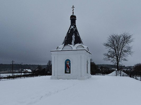 Видовое раскрытие часовни Николая Чудотворца со стороны улицы Центральная деревни Лучинское